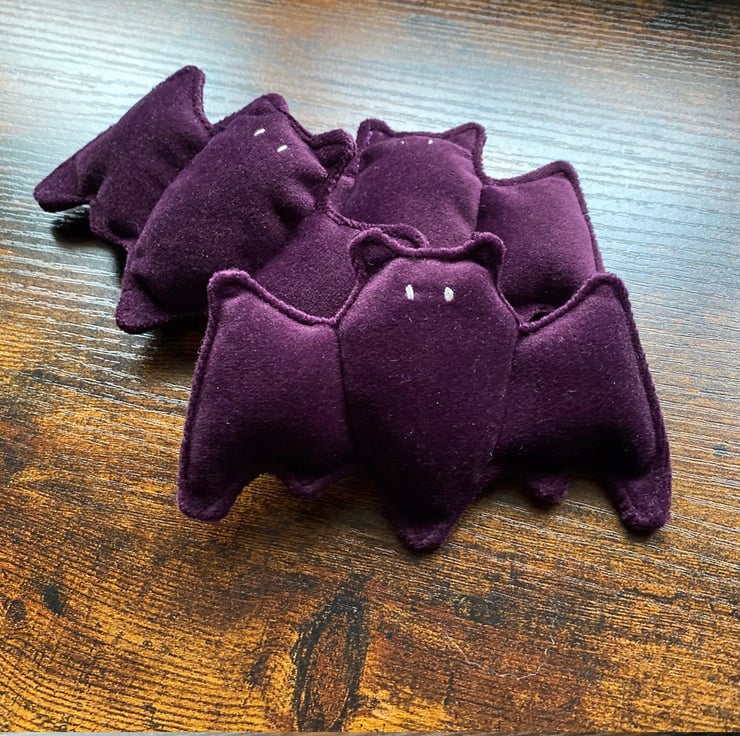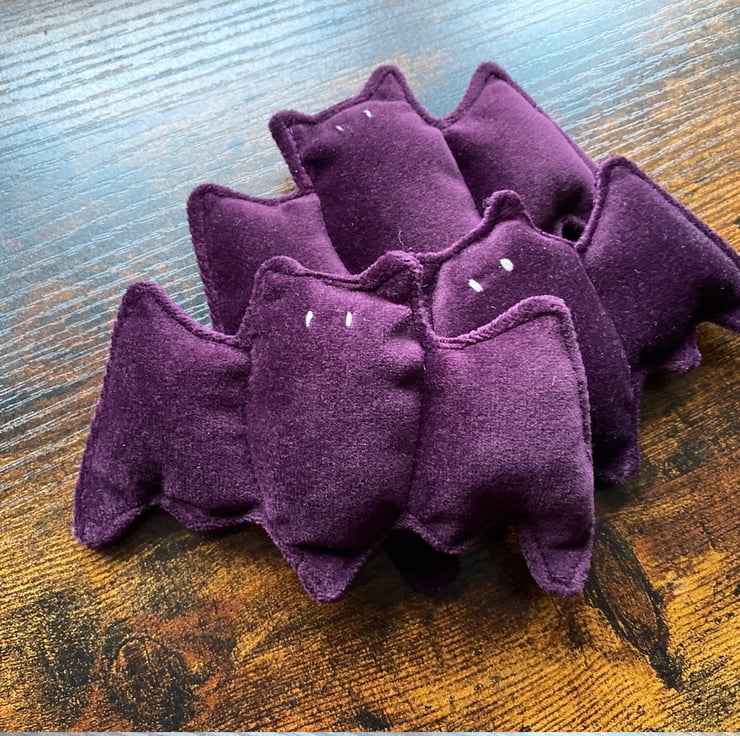 Filled with unique handmade luxury cat toys. All of them contain catnip and some have extra surprises. If you have any specific requirements please feel free to message me and I'll do my best to accommodate you.
