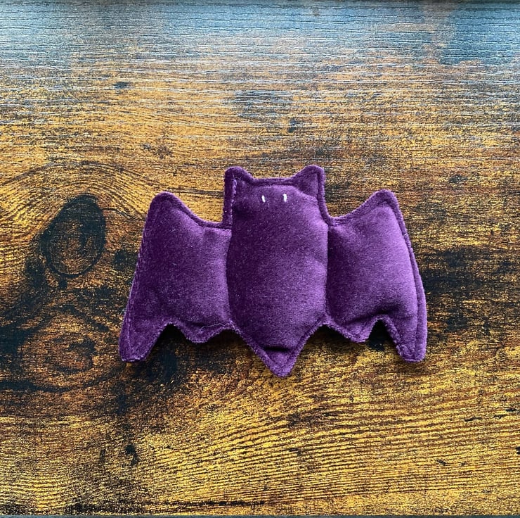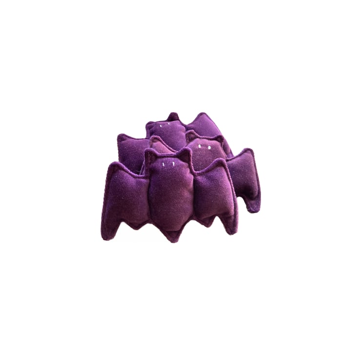 Benny is made from plush purple velvet fabric and filled with premium organic catnip and toy stuffing. His main body also has two bells inside.