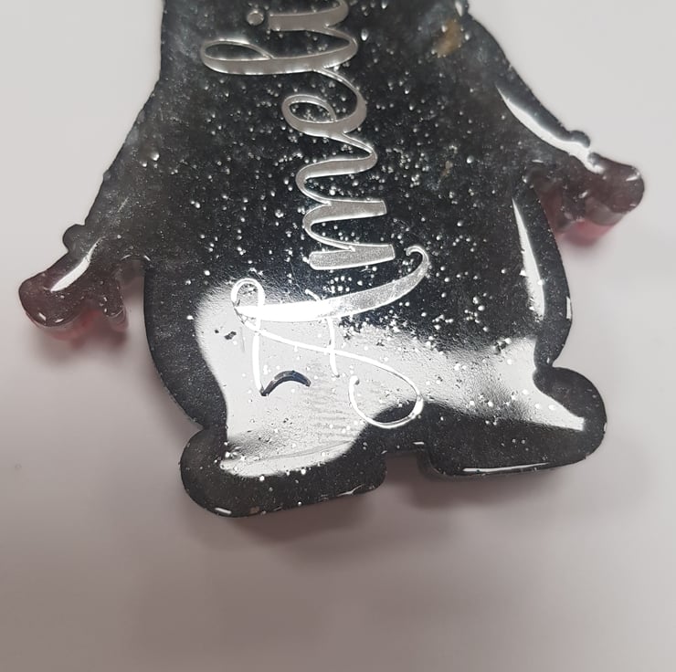 They are personalised on the back with a name of your choice in silver chrome lettering.