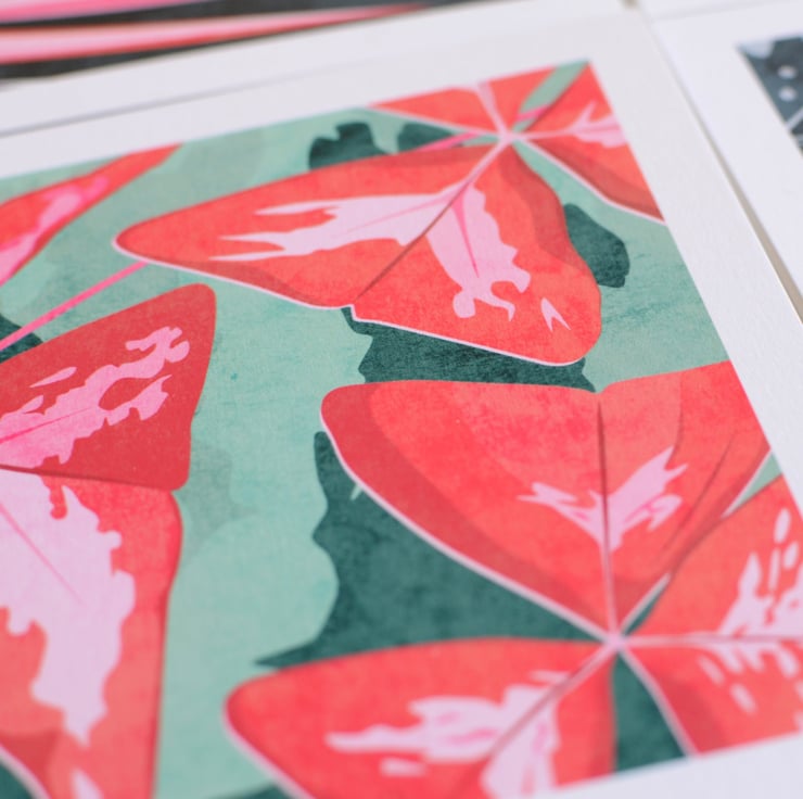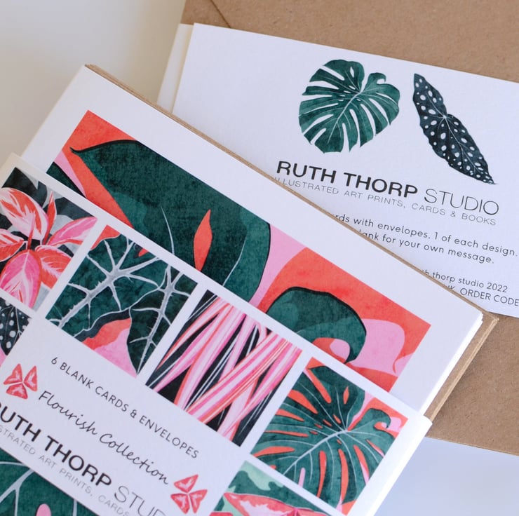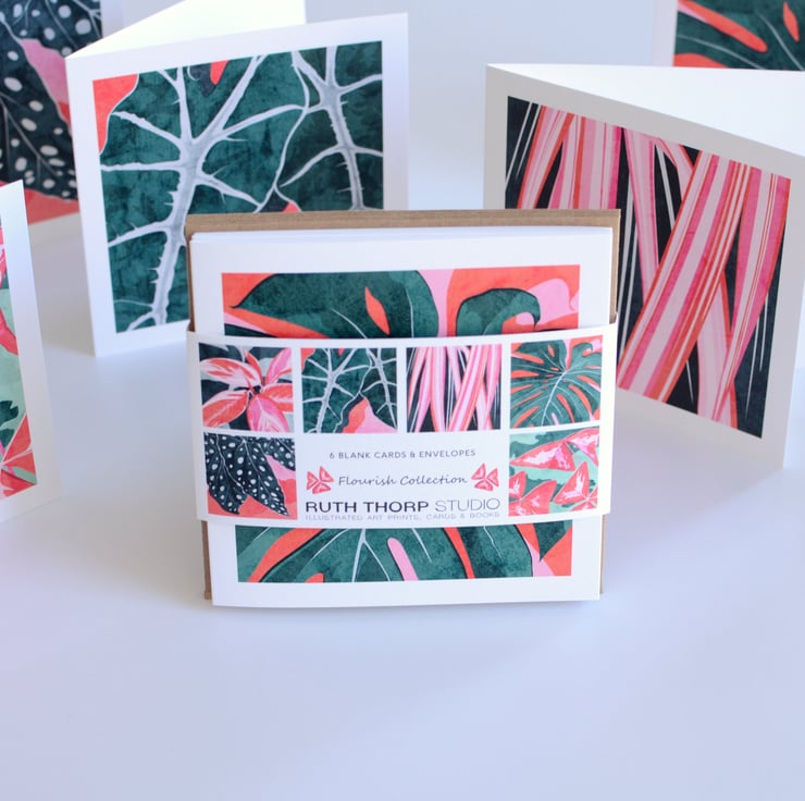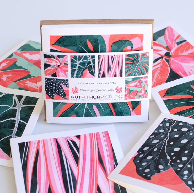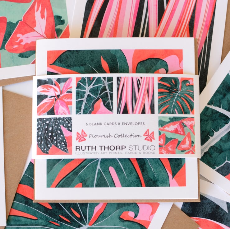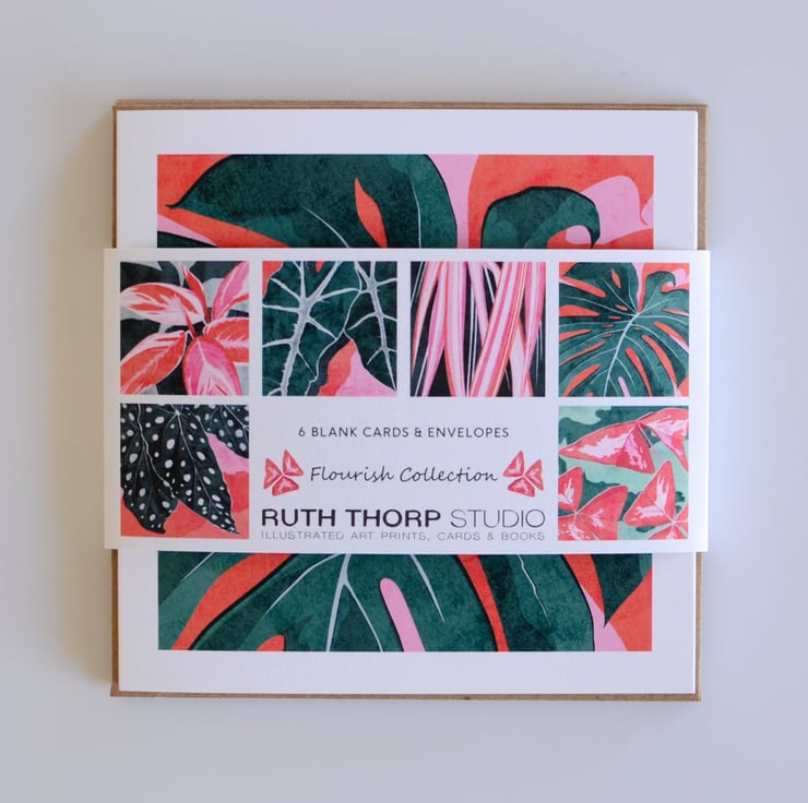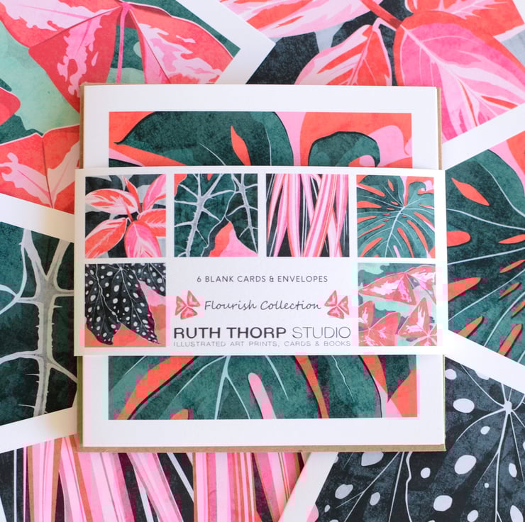Flourish is a collection of prints and cards inspired by some of my favourite house plants. With beautiful foliage, extraordinary patterns and bold forms, I've focussed on highlighting the details of the leaves to create a bright and colourful series perfect for plant lovers and colour addicts!