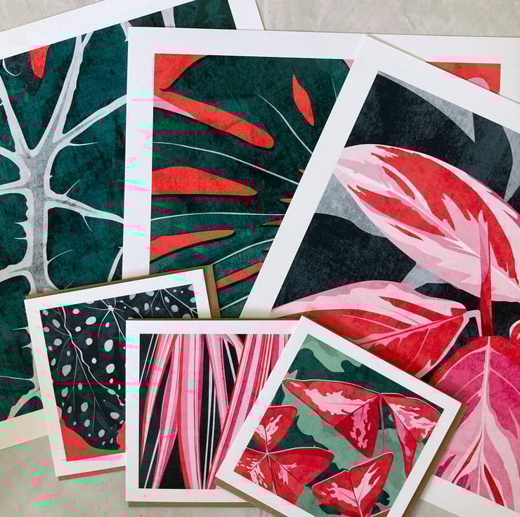 Flourish is a collection of prints and cards inspired by some of my favourite house plants. With beautiful foliage, extraordinary patterns and bold forms, I've focussed on highlighting the details of the leaves to create a bright and colourful series perfect for plant lovers and colour addicts!