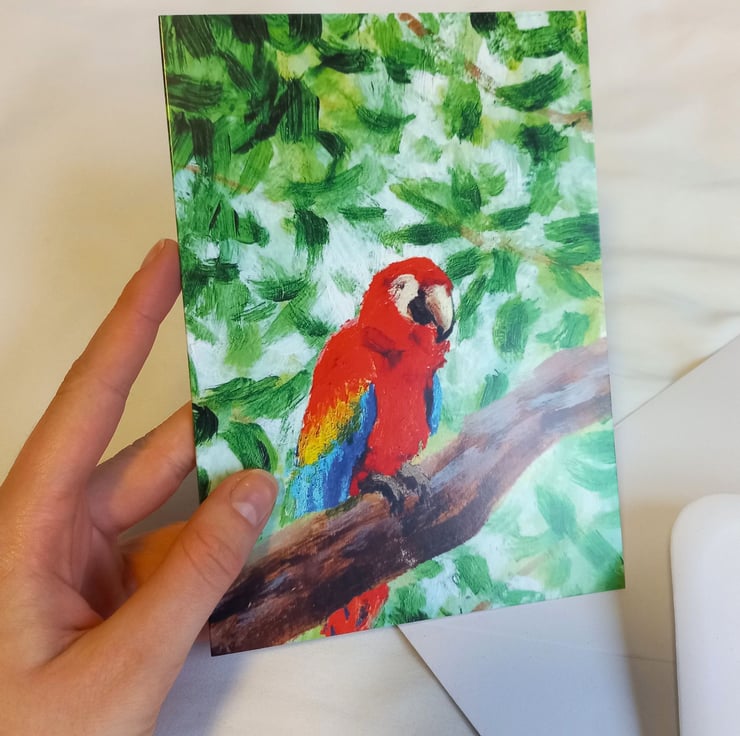 This fun little parrot is perfect for a range of occasions! The design is a print of a painting.