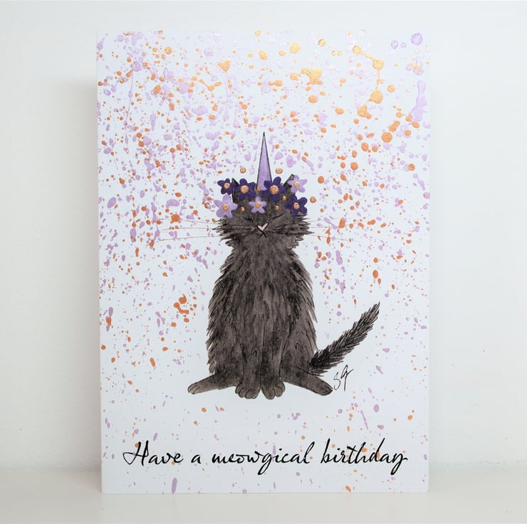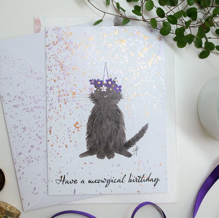 A sparkling, caticorn card is the purr-fect way to say happy birthday to cat lovers!