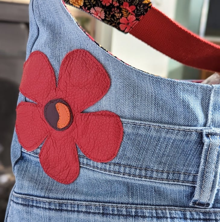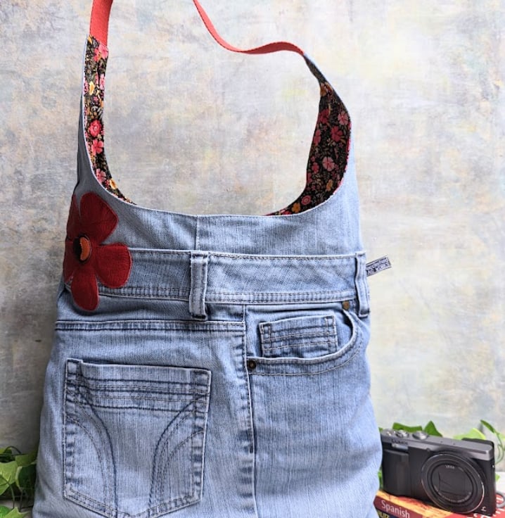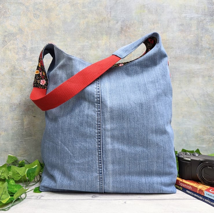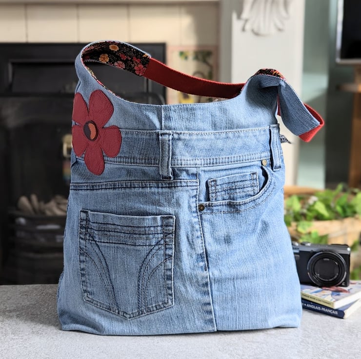 Hobo bag has been made from a pair of faded pre-loved jeans. It’s large, roomy and slouchy and generous enough for throwing in all your everyday essentials and more!