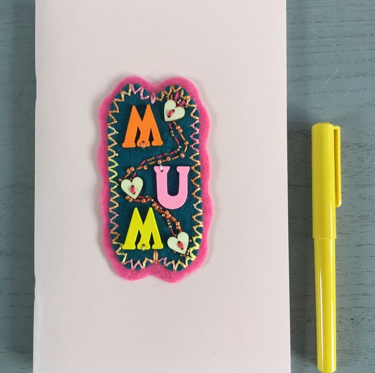 A personalised hand embroidered notebook for Mum....
