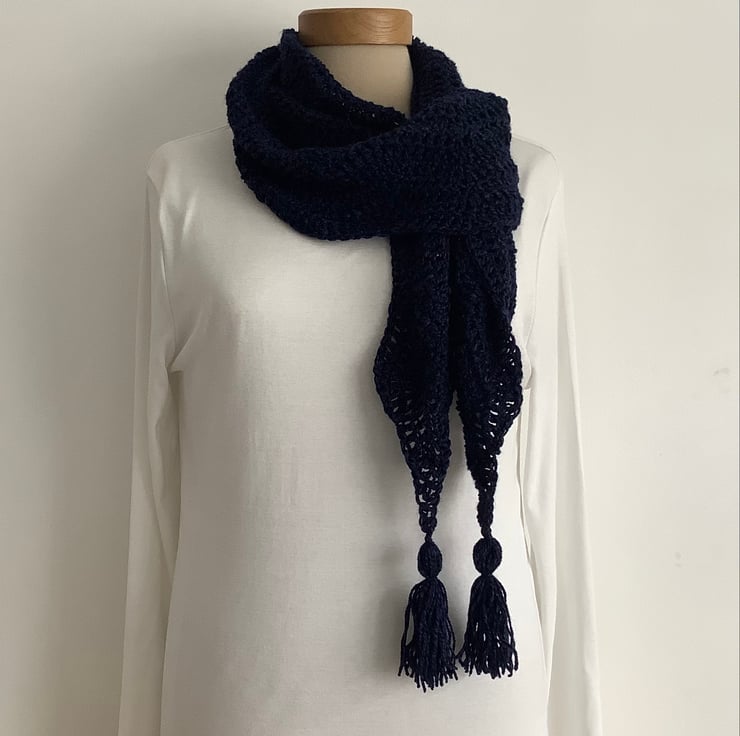 I have designed and crocheted this lovely , lightweight , skinny scarf 'Landscape' with those in-betweeny months in mind ! I've used a deliciously soft ,cotton blend yarn for a nice drape . I've used a gentle ripple pattern for this scarf and added tassles to each end . This accessory will take you through pretty much every season ! .