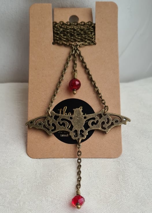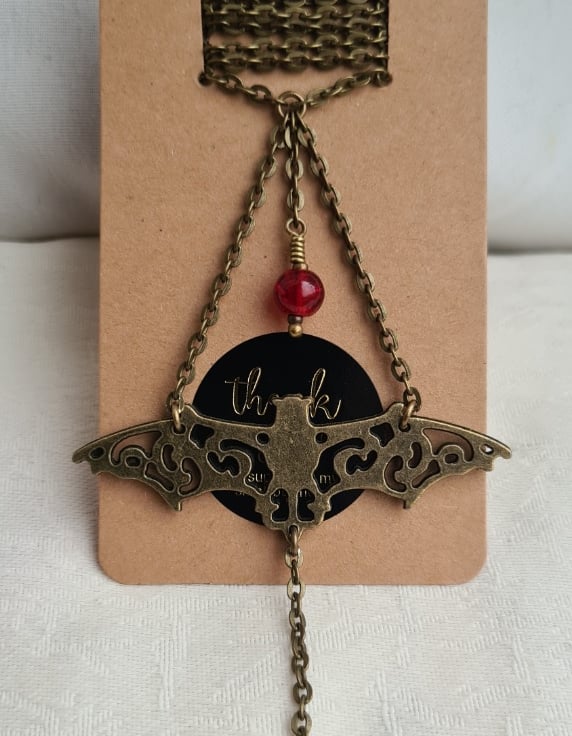 Gorgeous Vampire's Ball Bronze-Tone Fancy Bat Dangly Necklace.