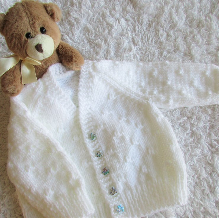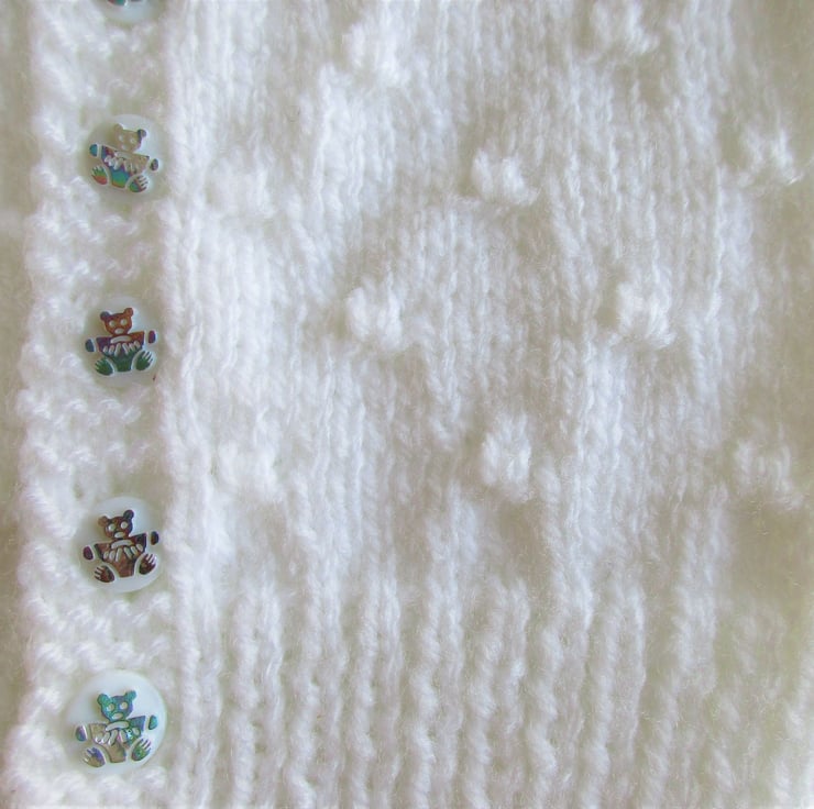 Fastening with 5 Round White Buttons with foil teddy motif (Boys Way)