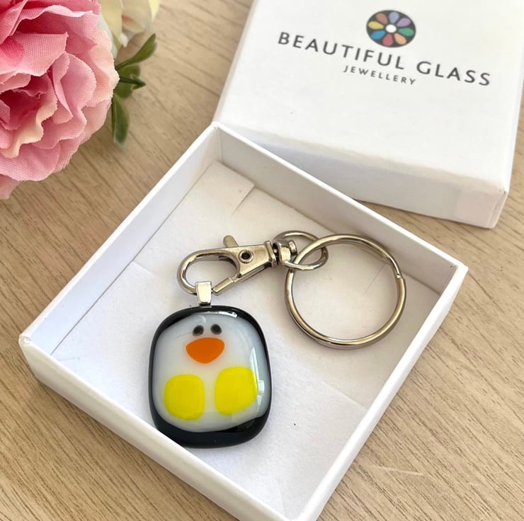 This fused glass penguin keyring would make a lovely small gift, perhaps as a teacher thank you . It would also make a cute I miss you or I love you gift for your loved one to keep them at all times.