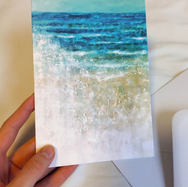 This design is a print of an abstract painting of the sea, and is perfect for a range of occasions.