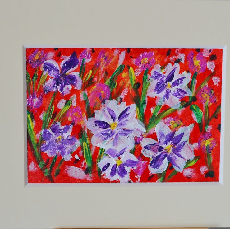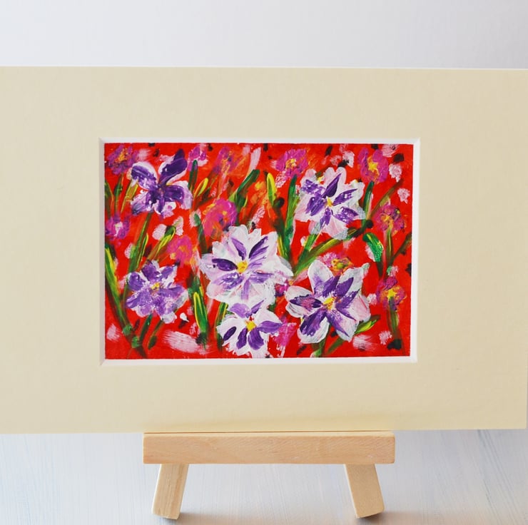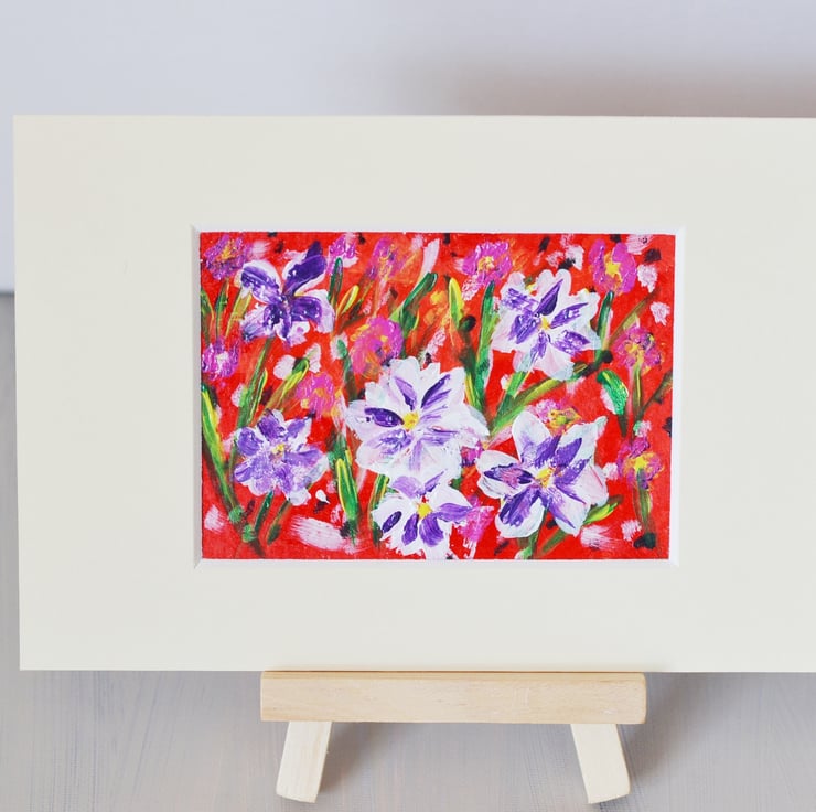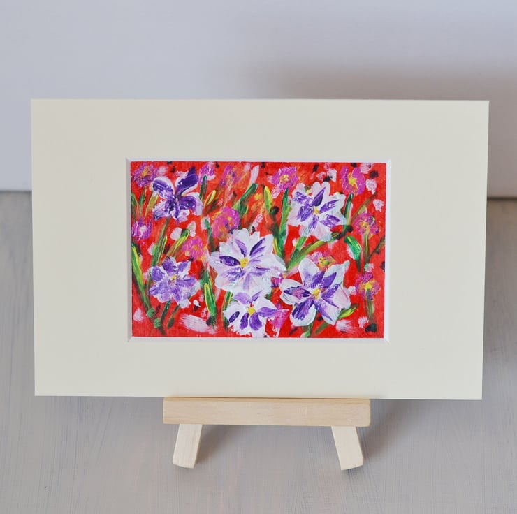 Acrylic flower abstract aceo painting. Measures 4" x 6" mounted in an ivory mount.