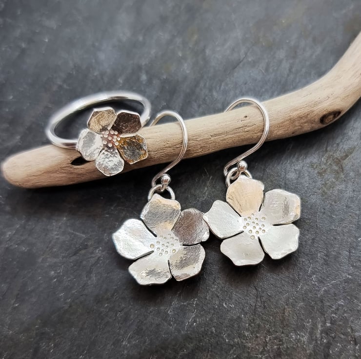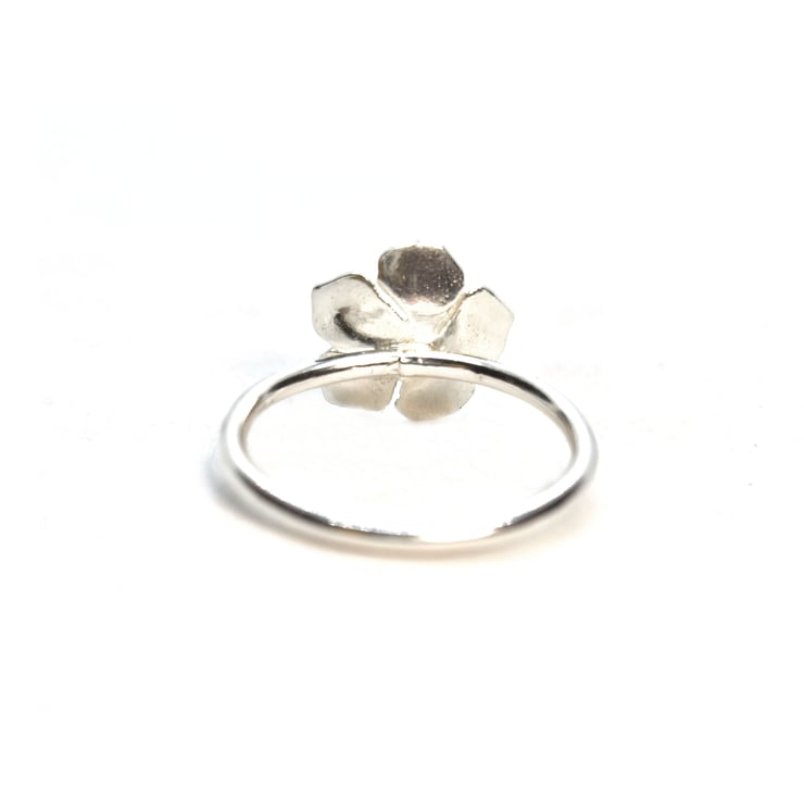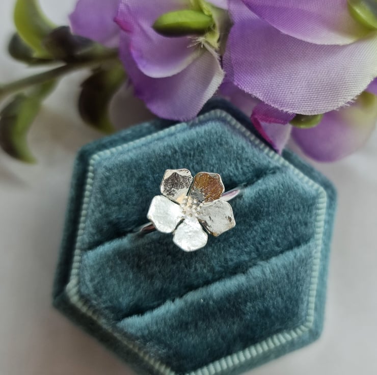 The flower measures approximately 12mm by 12mm and the band is 1.5mm wide. This ring is a UK size N.5.