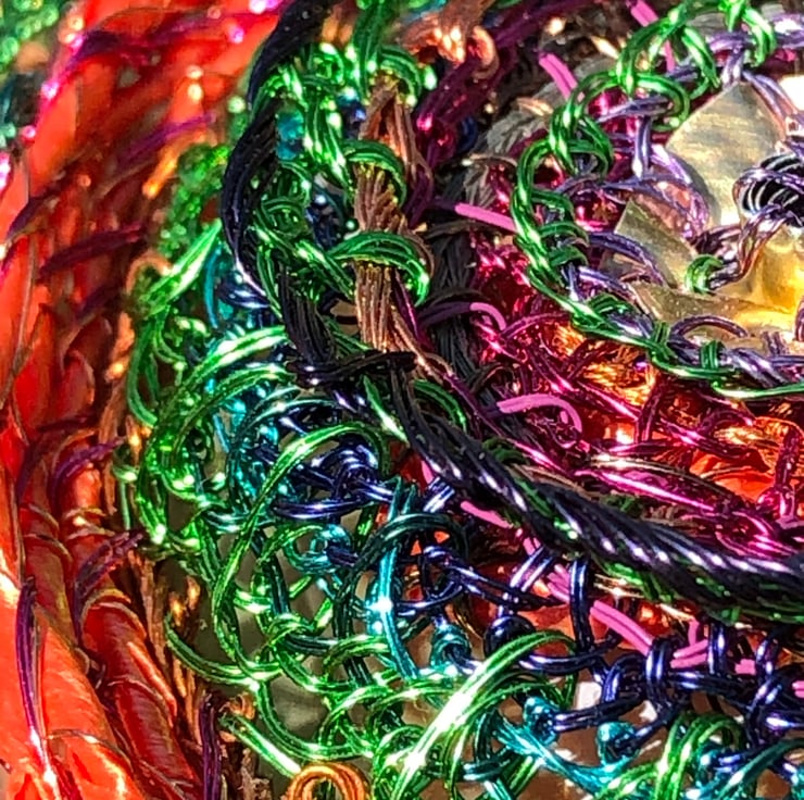 Some of the wire has been recycled from old televisions and combined with bought wire with metal reclaimed from tomato puree tube.