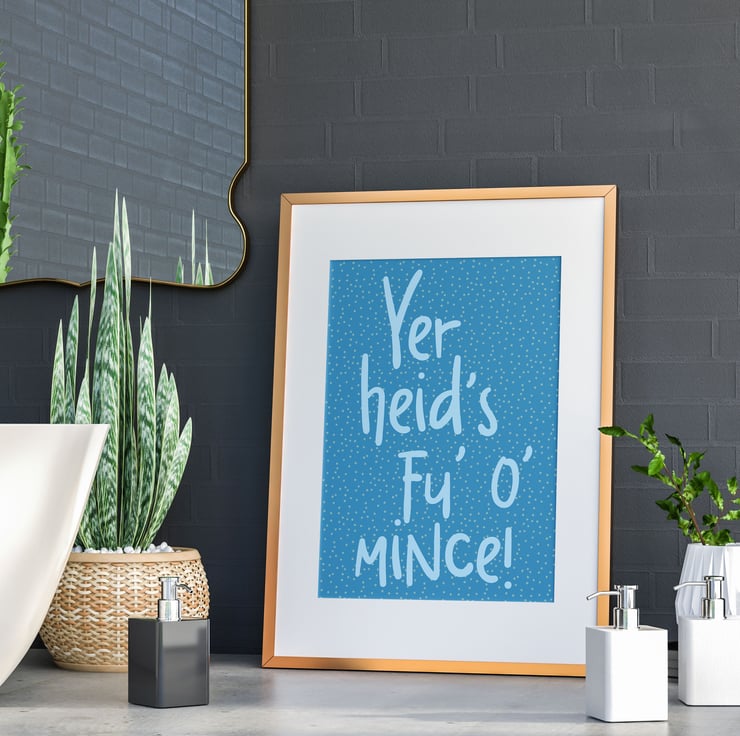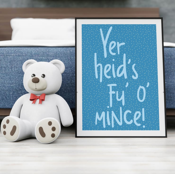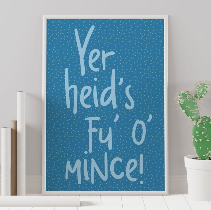 Scottish phrase print: Yer heid’s fu’ o’ mince!