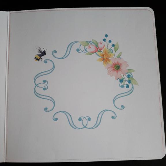 This card is 17cm square and comes with a white envelope which has a flower stamped in one corner, the insert has the same blue frame with flowers as the front, with space for your message.