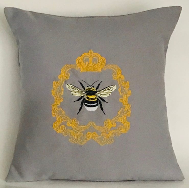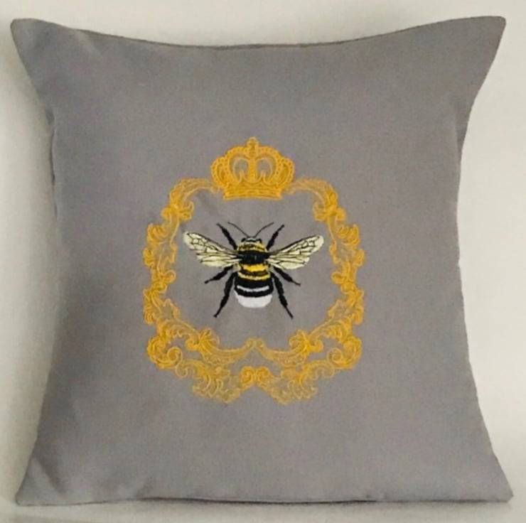 Framed Queen Bee Embroidered Cushion Cover