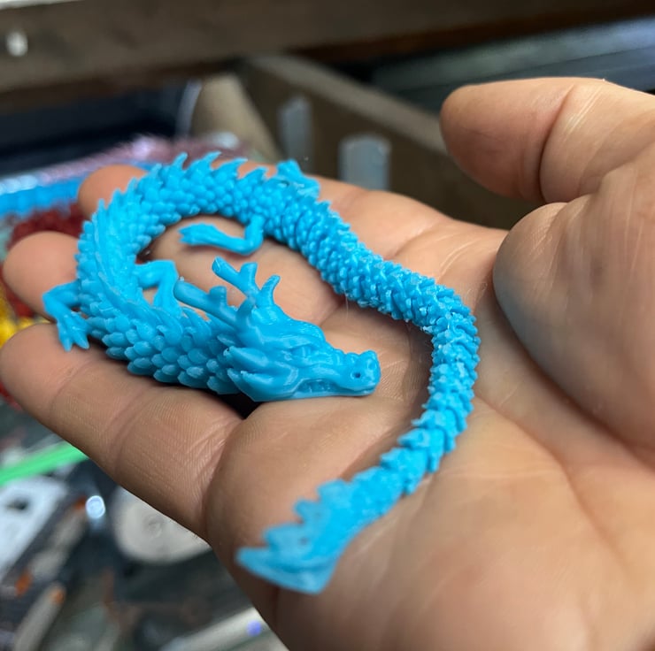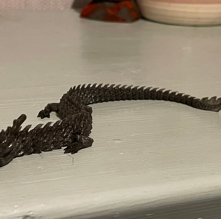 Following on from our supersize dragon we decided to be unique and go the other way. We have shrunk the dragon down as small as we could print it to create this very tactile finger dragon.