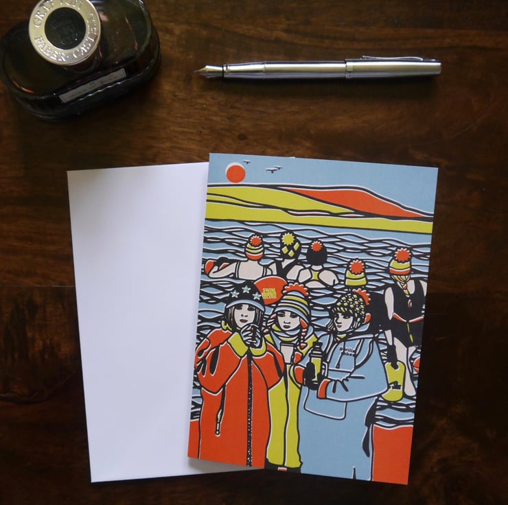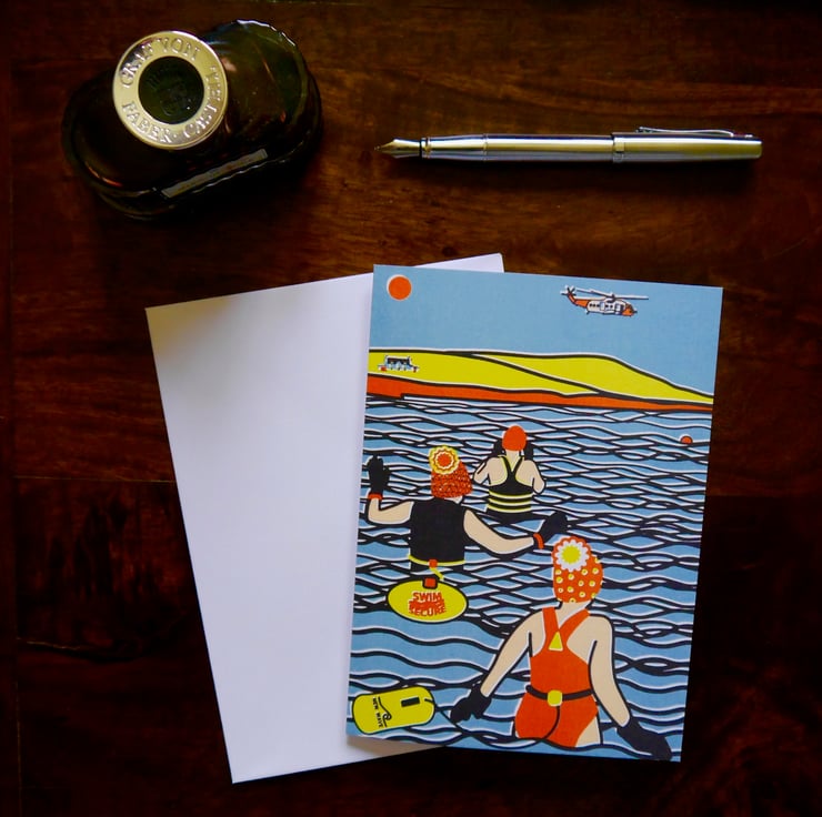 These art greetings cards are inspired not only by my own enjoyment but also by my observing the braver swimmers who venture forth without wetsuits.