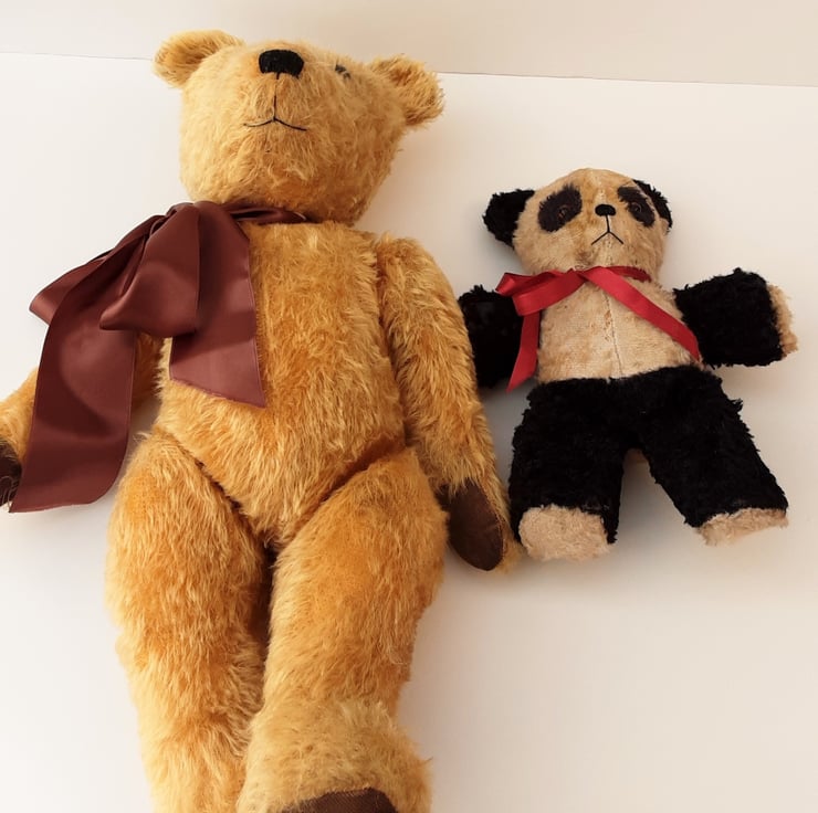 I have repaired and restored a number of old, antique and very dirty teddy bears, the photos show before and after images of some of them. Some have needed repairs to limbs, eyes and facial features, stuffing that has sagged and cleaning. At first I thought little panda was beyond restoring, most of his fur was missing and he was wearing thin in places. No features at all and he was very dirty but I was delighted to bring him back to life again. He still shows signs of age, he is an antique bear and has been well loved but he now has his personality back.