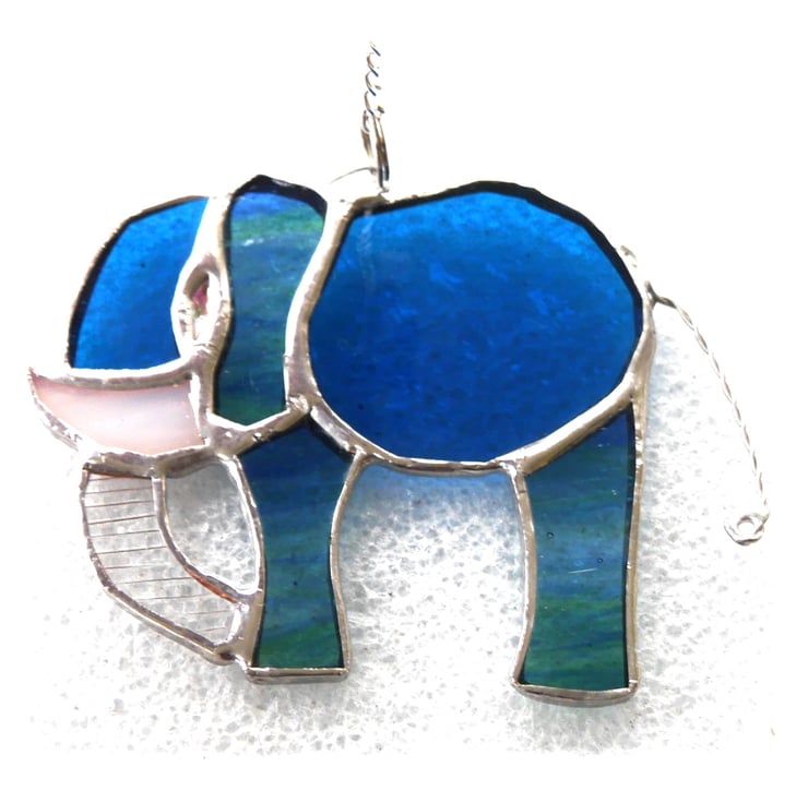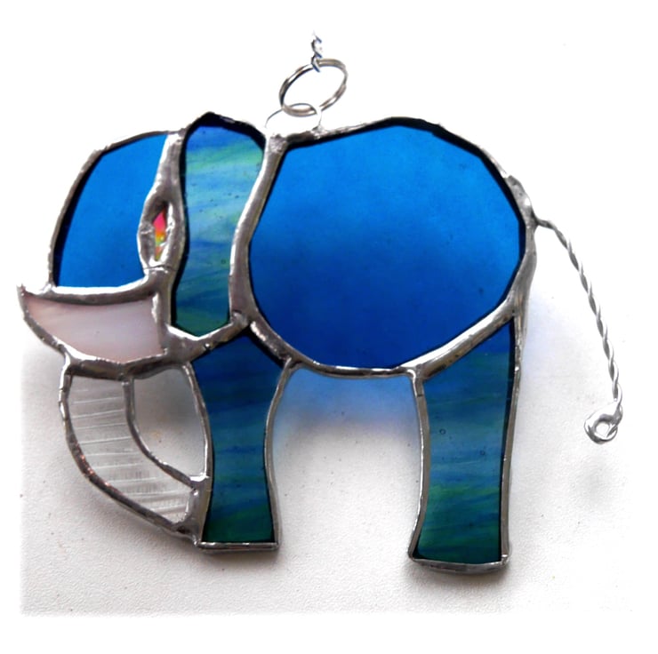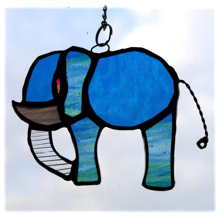 The elephant looks lovely hanging in the window where it catches the light. It hangs from a little silver chain which is securely attached to the top of the elephant.