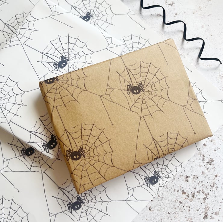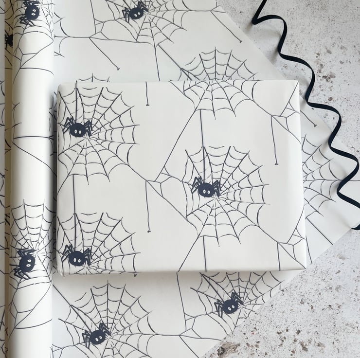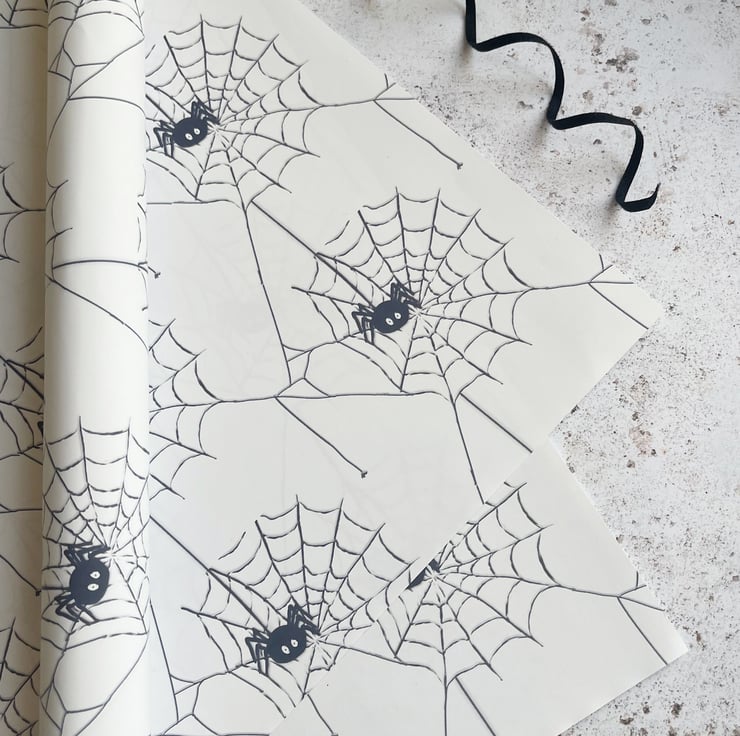 Spiderweb gift wrap, Halloween themed Wrapping paper. For lovers of Creepy crawlies. A3 wrapping sheets with spiderweb design.