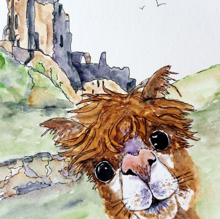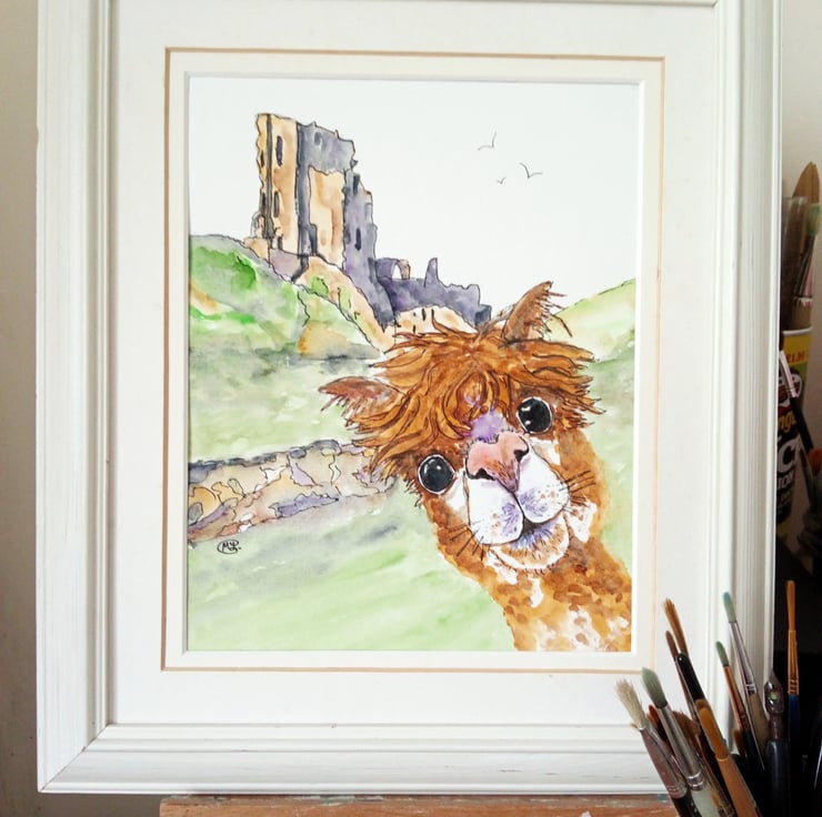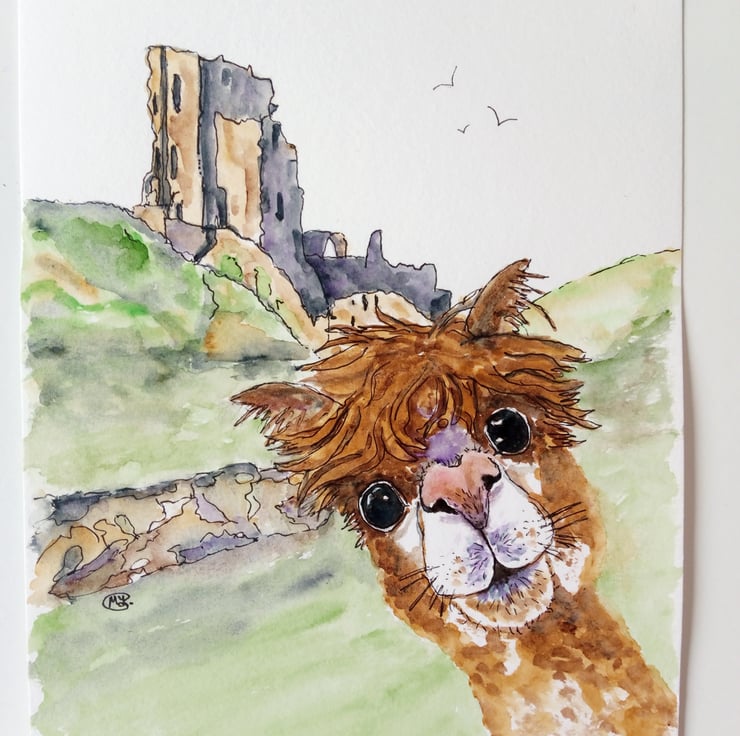 A cute and curious Alpaca is visiting Corfe Castle in Dorset.