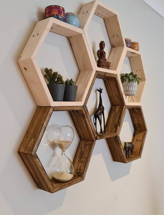 Handmade from reclaimed timber, this stunning hexagon shelf would make an excellent addition to any room.