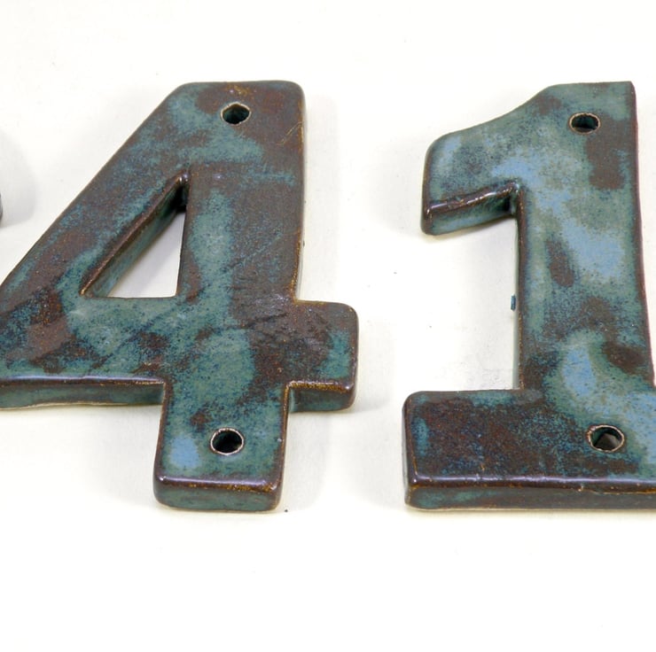 All numbers are available (photos are samples) ceramic house numbers .Fully hand made cut from slab of stoneware clay Coated with multilayer of high fire glaze