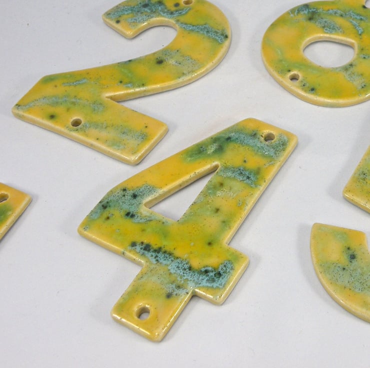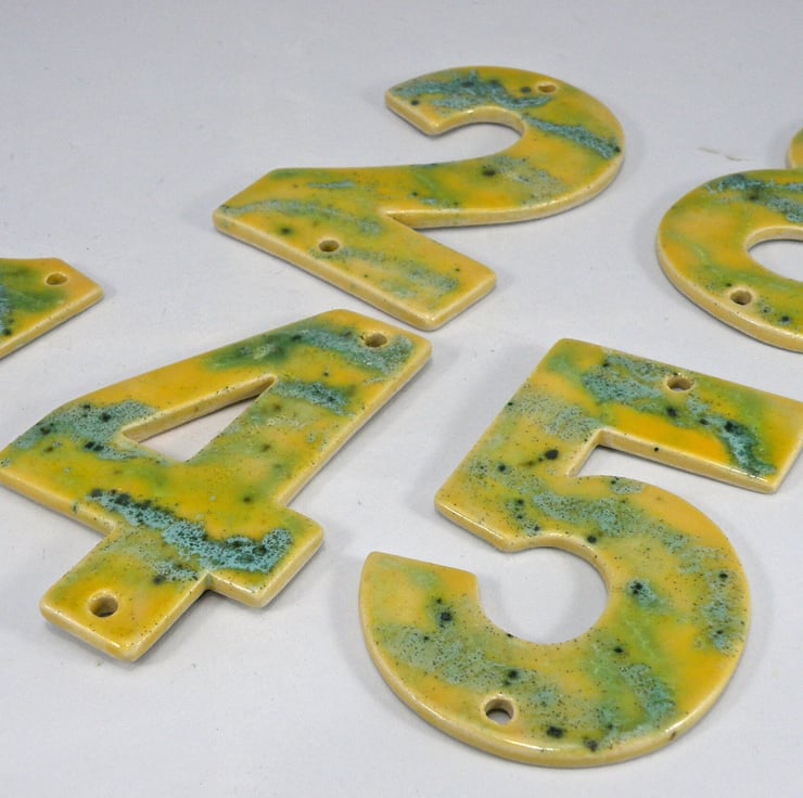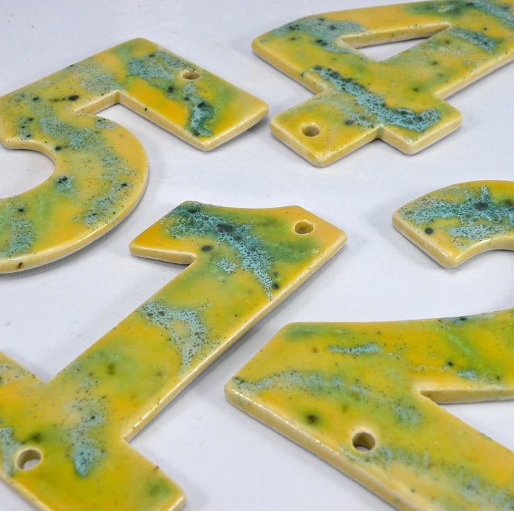 All numbers are available (photos are samples) ceramic house numbers .Fully hand made cut from slab of stoneware clay Coated with multilayer of high fire glaze