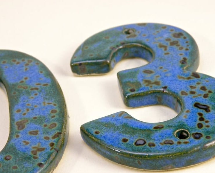 All numbers are available (photos are samples) ceramic house numbers .Fully hand made cut from slab of stoneware clay Coated with multi layer of high fire glaze