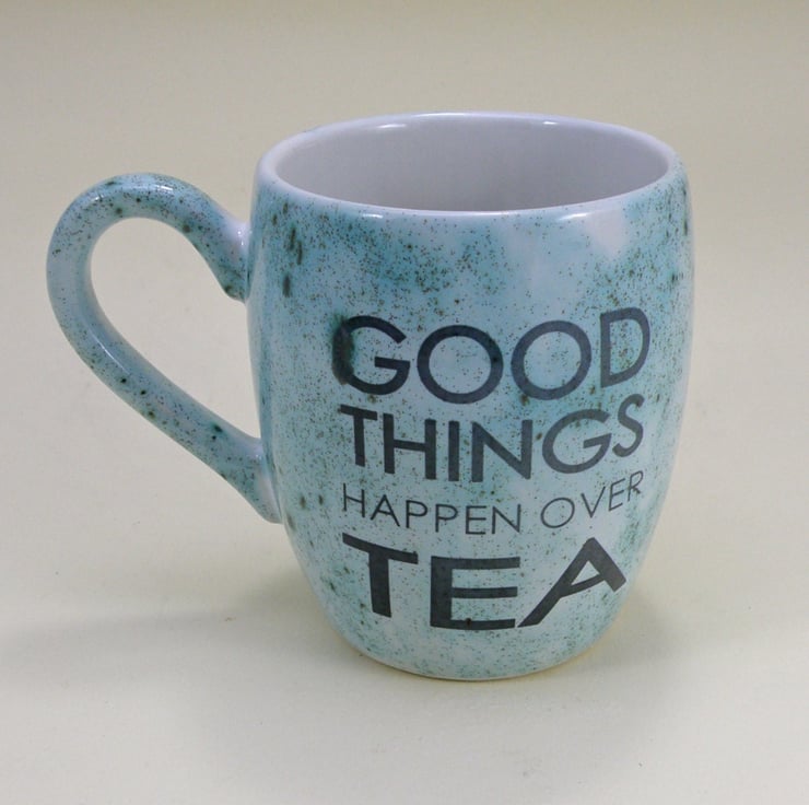 Good things happen over tea Mug Tea mug coffee mug Food safe Lead free glaze