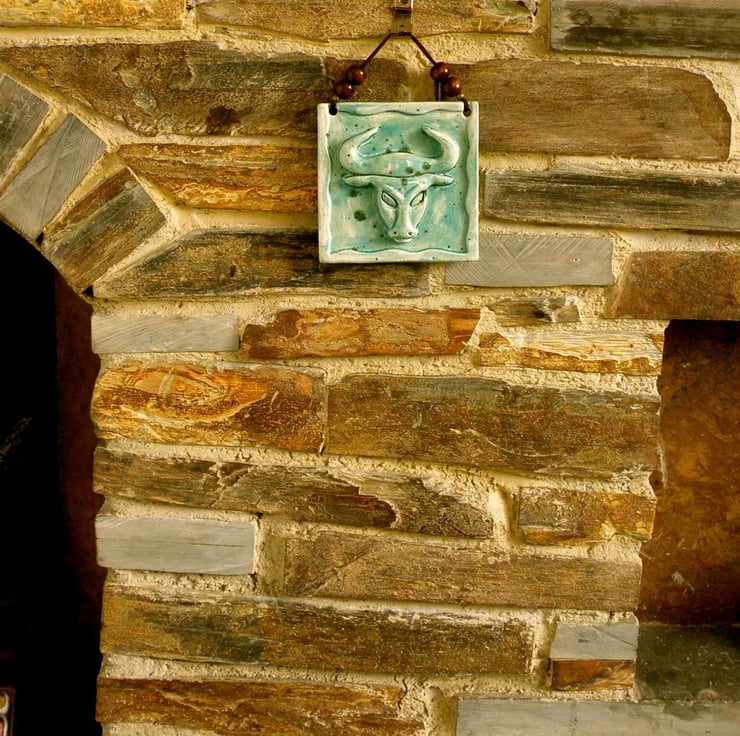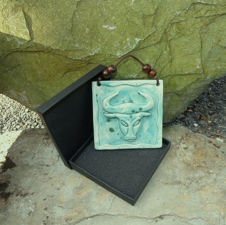 Zodiac Wall art pottery TAURUS hanging decoration April 21-May 20 wall hanging