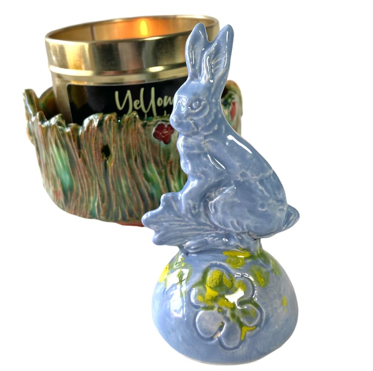 Charming handmade bunny created from a mould of my original design. Can be used as a candle snuffer or simply enjoyed as a collectible ornament.