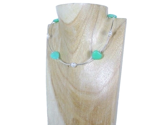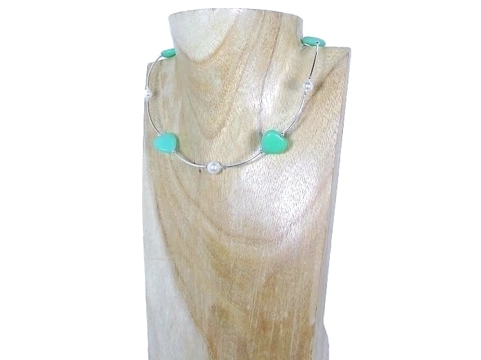 Smooth & glossy 15mm Green Aventurine heart beads are the focus of this handmade necklace.