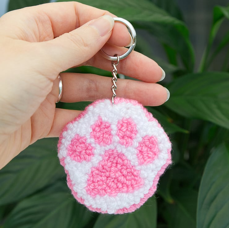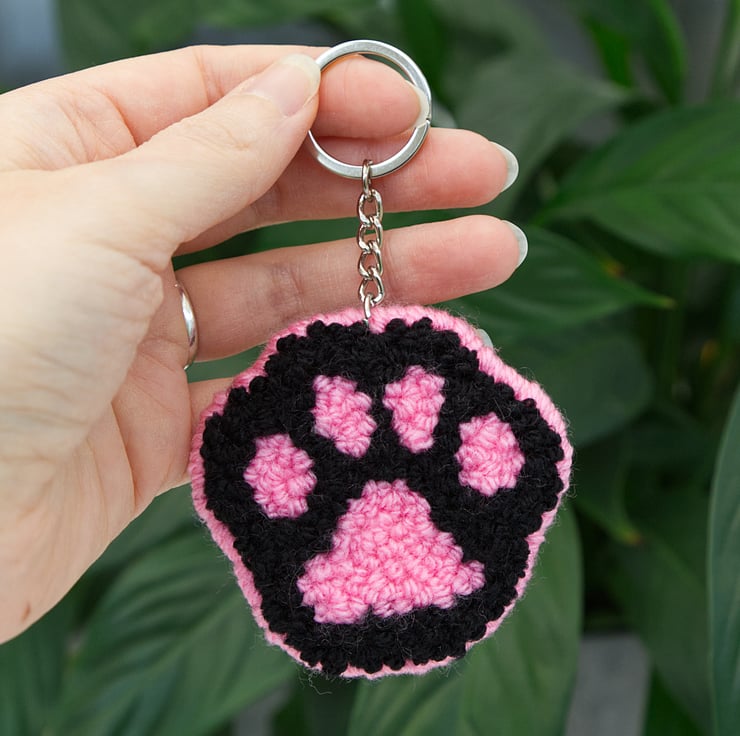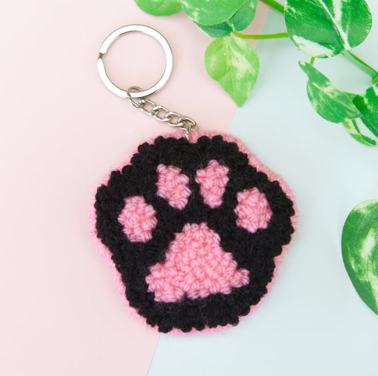 Cute tufted cat paw print keyrings. These keyrings have been made using a technique called punch needle using 100% acrylic yarn. They have been backed with black or white felt and finished round the edge with a whip stitch. A stainless steel keyring chain has been attached to each. They would make perfect little gifts to anyone who just love those little cat bean toes!