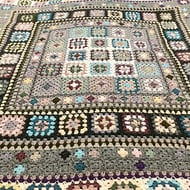 This lovely crochet throw is handmade using a acrylic wool blend yarn in browns, creams, greens, blues, black and beige. It has a beige border. The blanket is 46” long and 41” wide so a lovely size for a sofa throw to snuggle up in. It is very warm and cosy. The Afghan is machine washable at 30oC and best to dry flat.
