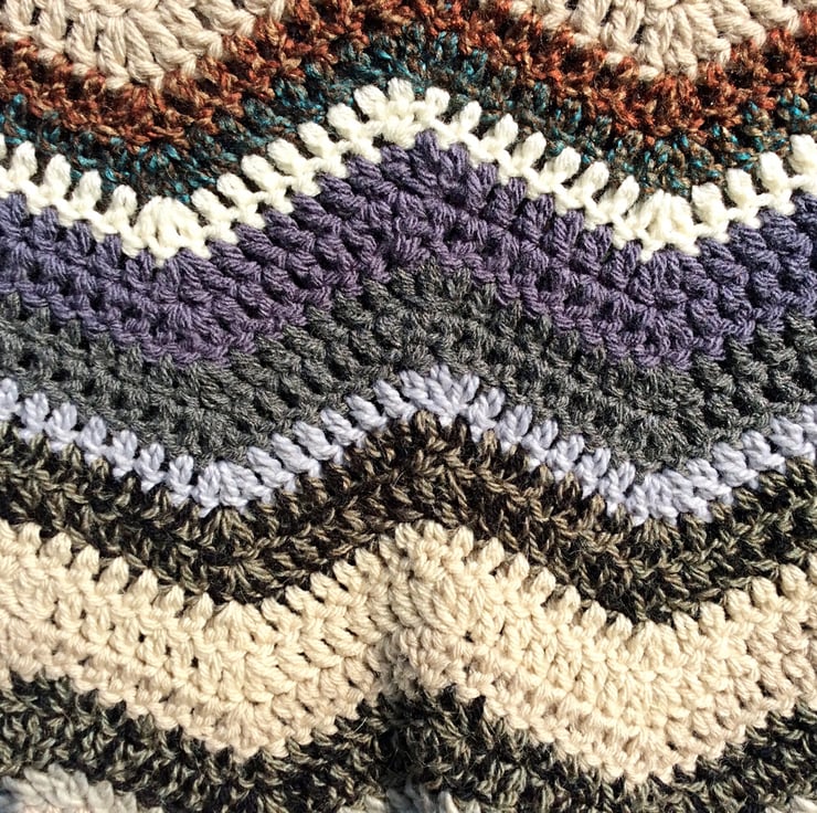 A lovely crochet ripple Afghan to cosy up in on the sofa.