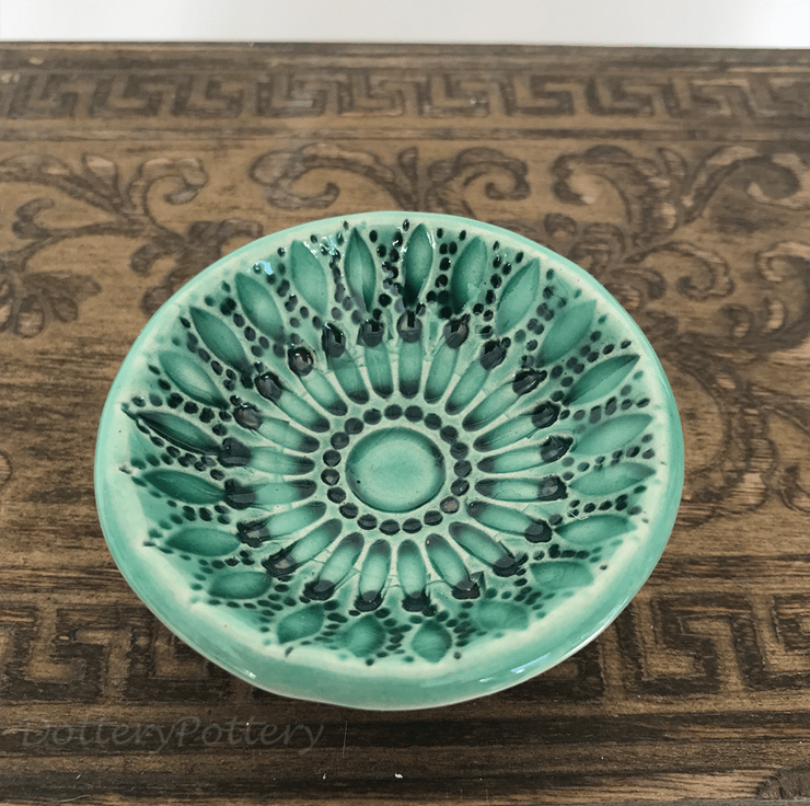 Little ceramic bowl candle holders trinket dish turquoise SALE