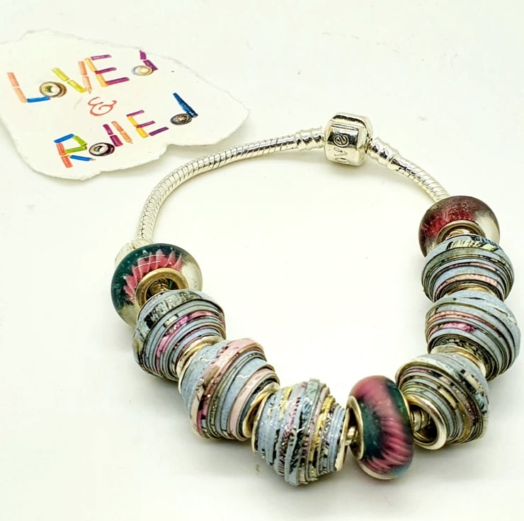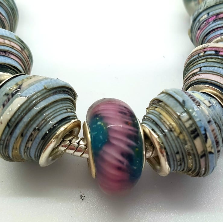 A European style bracelet made of paper beads, complemented with pretty glass beads.