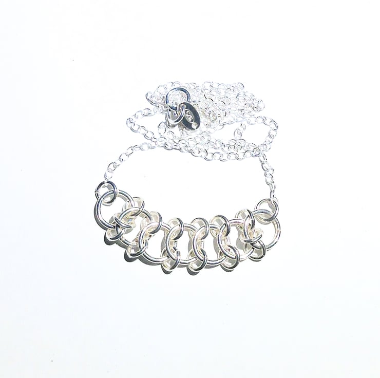 For this necklace I have combined attractive handmade sterling silver chainmaille work with sterling silver chain to create a beautiful necklace.
