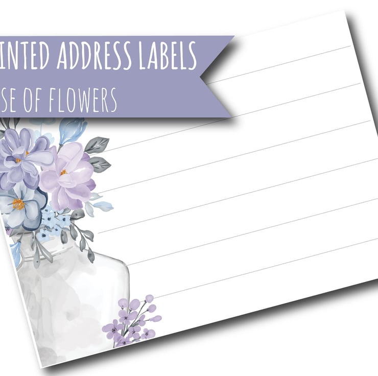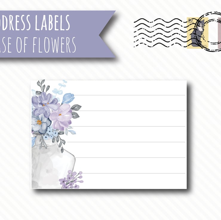 A pack of 10 x handmade self-adhesive address labels with a pretty vase of flowers theme.