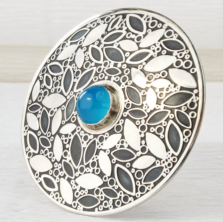 We offer a choice of gemstones: garnet, amber, turquoise, amethyst, blue chalcedony, light green chalcedony, white moonstone, rainbow moonstone and lab. grown blue opal triplet. This leaf pattern brooch has been finished with a clear, protective, anti-tarnish coating and comes in one of our branded gift boxes.