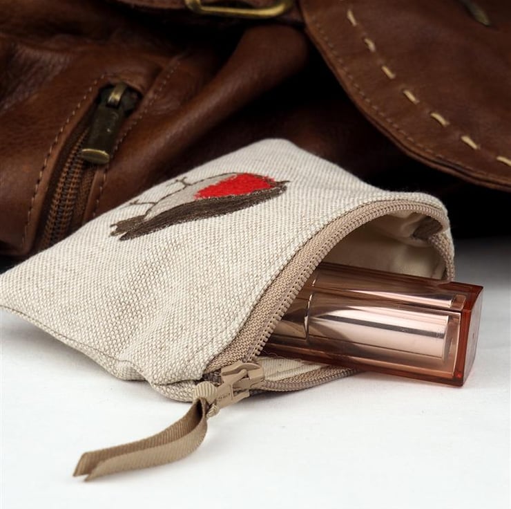 This beautiful handmade purse is made from Linen Look Cotton fabric. The purse is lined with soft cotton and has a zip fastening. It features one of my own unique designs on the front cover and is stitched using the Freehand Machine Embroidery technique.