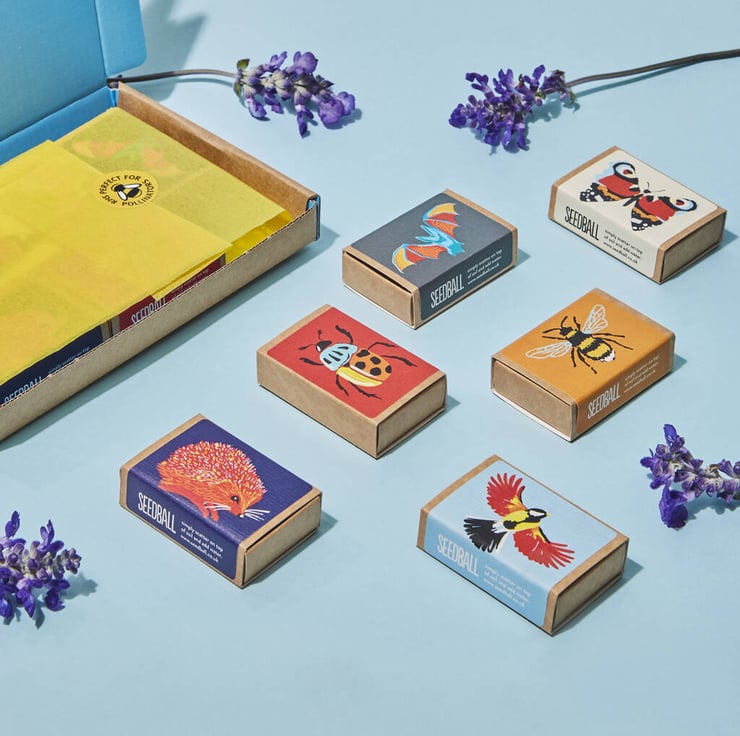 Six wildflower seed mixes for hedgehogs, bees, birds, bats, beetles and butterflies. A beautiful gardening gift for wildlife lovers!