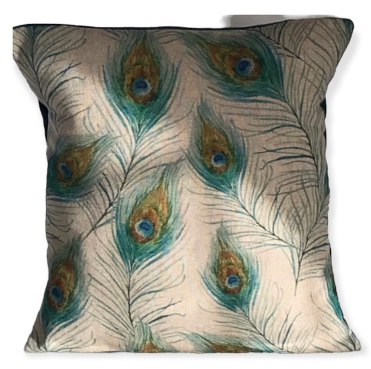 Add a pop of colour to your home décor with this stunning Peacock Feather Cushion Cover from InknstitchKraft. The cover measures 12"x12" and is made from 100% cotton in a stone colour, featuring a peacock feather design.