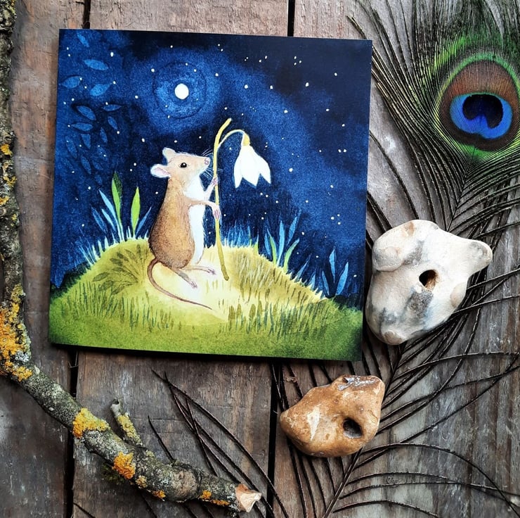 Wilfred Mouse Greetings Card with words inside