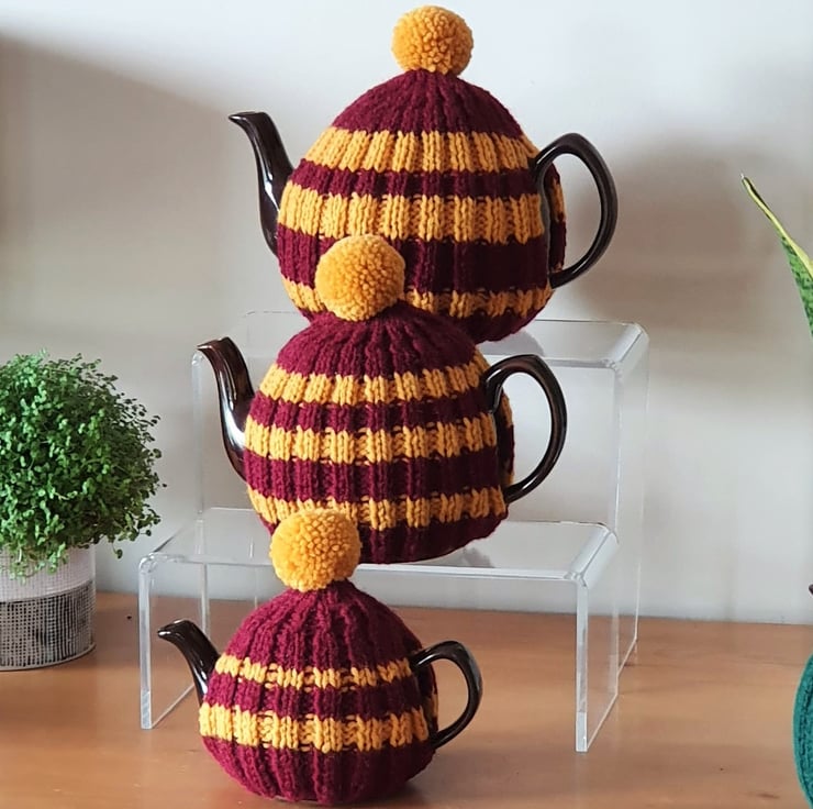 This tea cosy is available in 3 sizes; Small, Medium and Large.