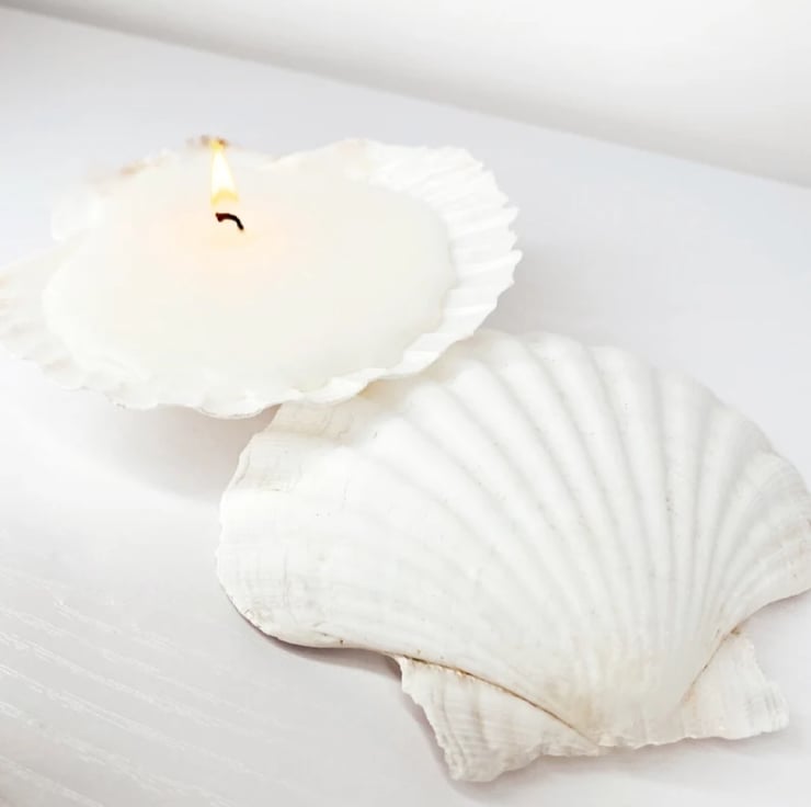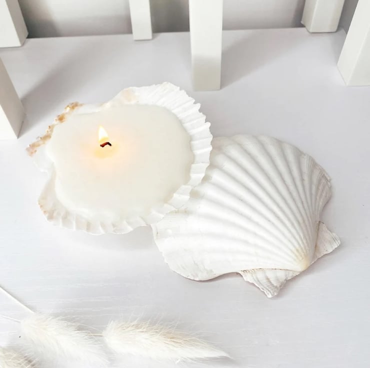 Two hand crafted white recycled scallop shells filled with eco friendly soy wax and scented with bergamot oils. A fabulous addition to your home decor or a beach style gift for family and friends.