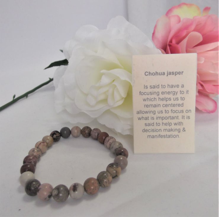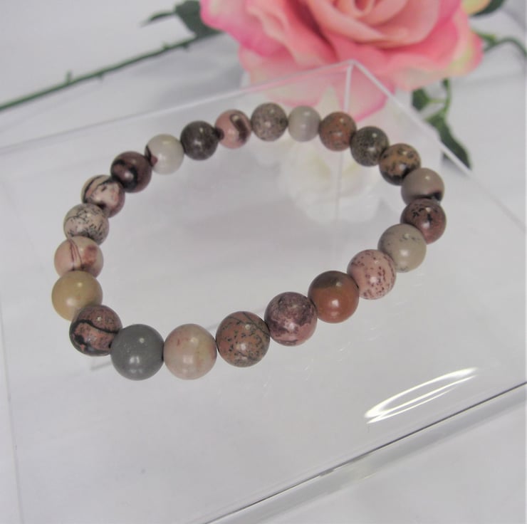 A unisex stretchy / elastic bracelet made using 8 mm chohua jasper beads.