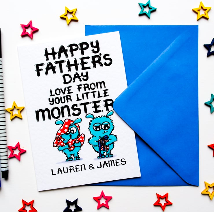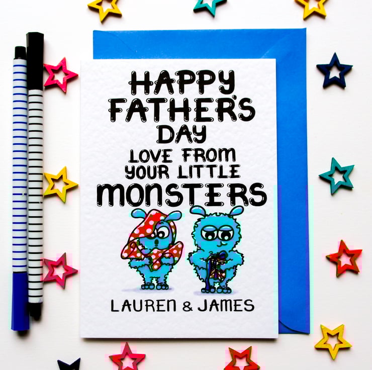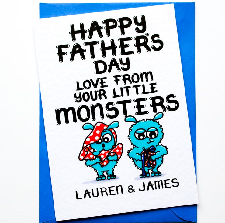 Greeting on front: HAPPY FATHER'S DAY LOVE FROM YOUR LITTLE MONSTERS (NAMES)